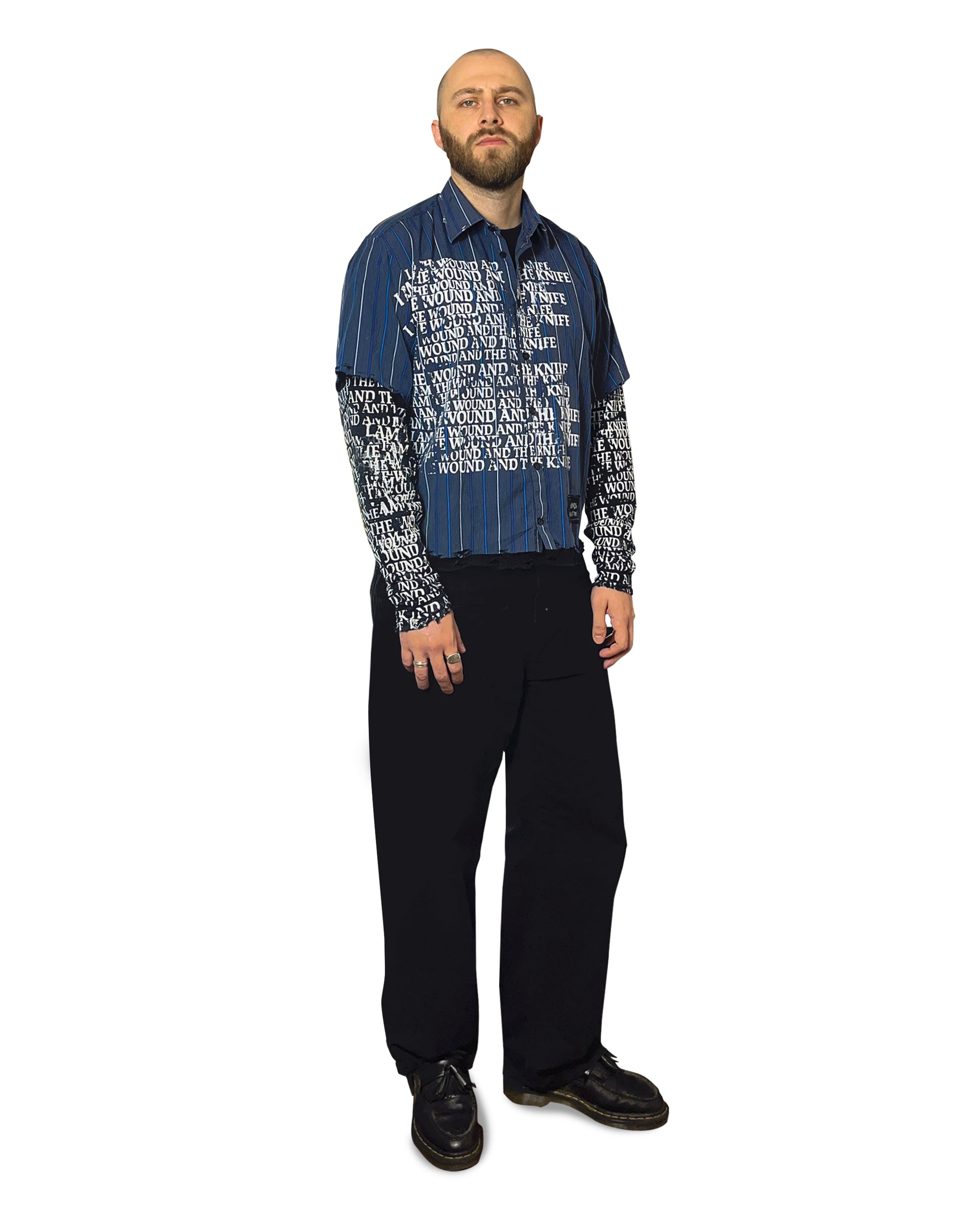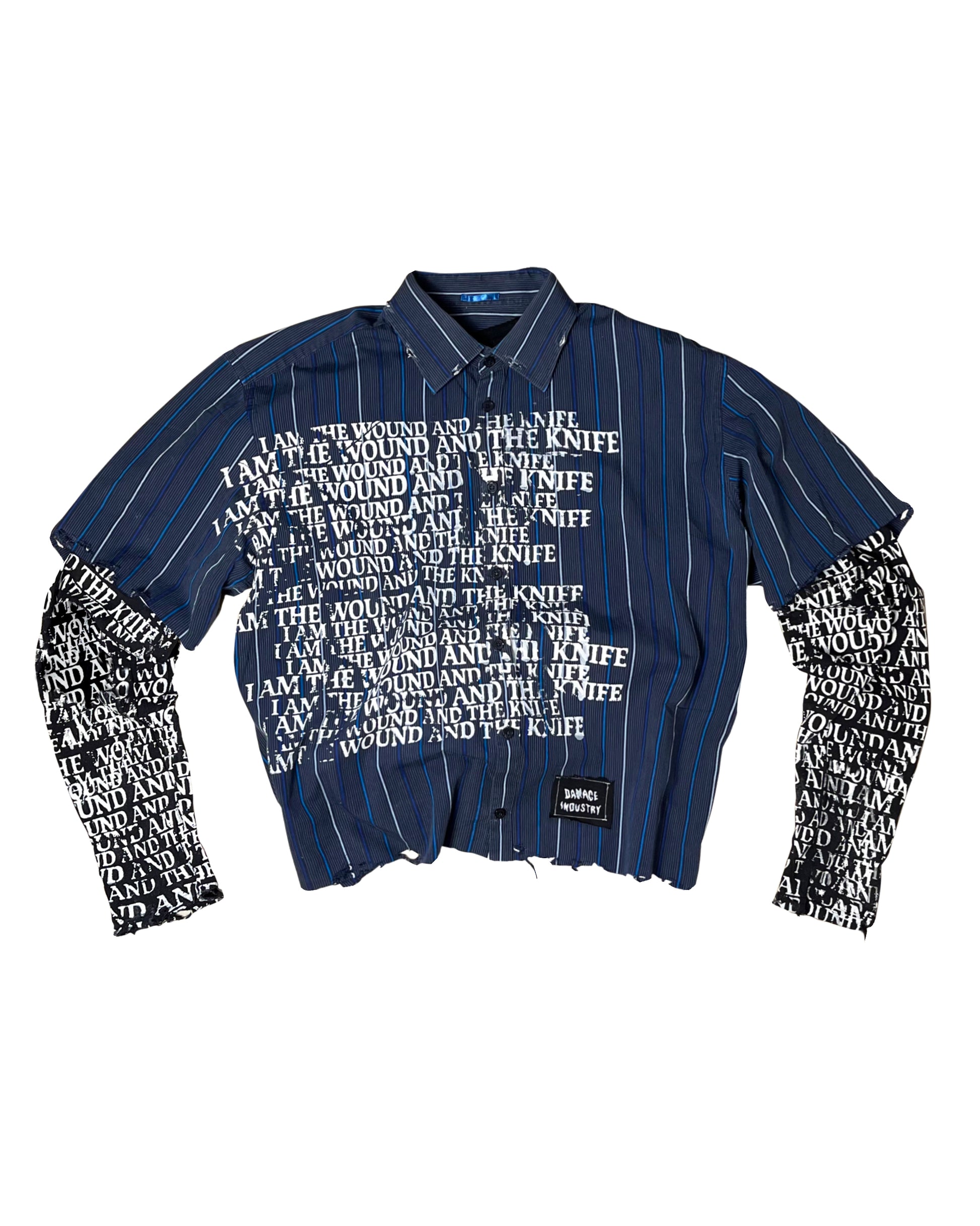Custom on Brice short sleeve shirt with silkscreen print: "I am the wound and the knife."